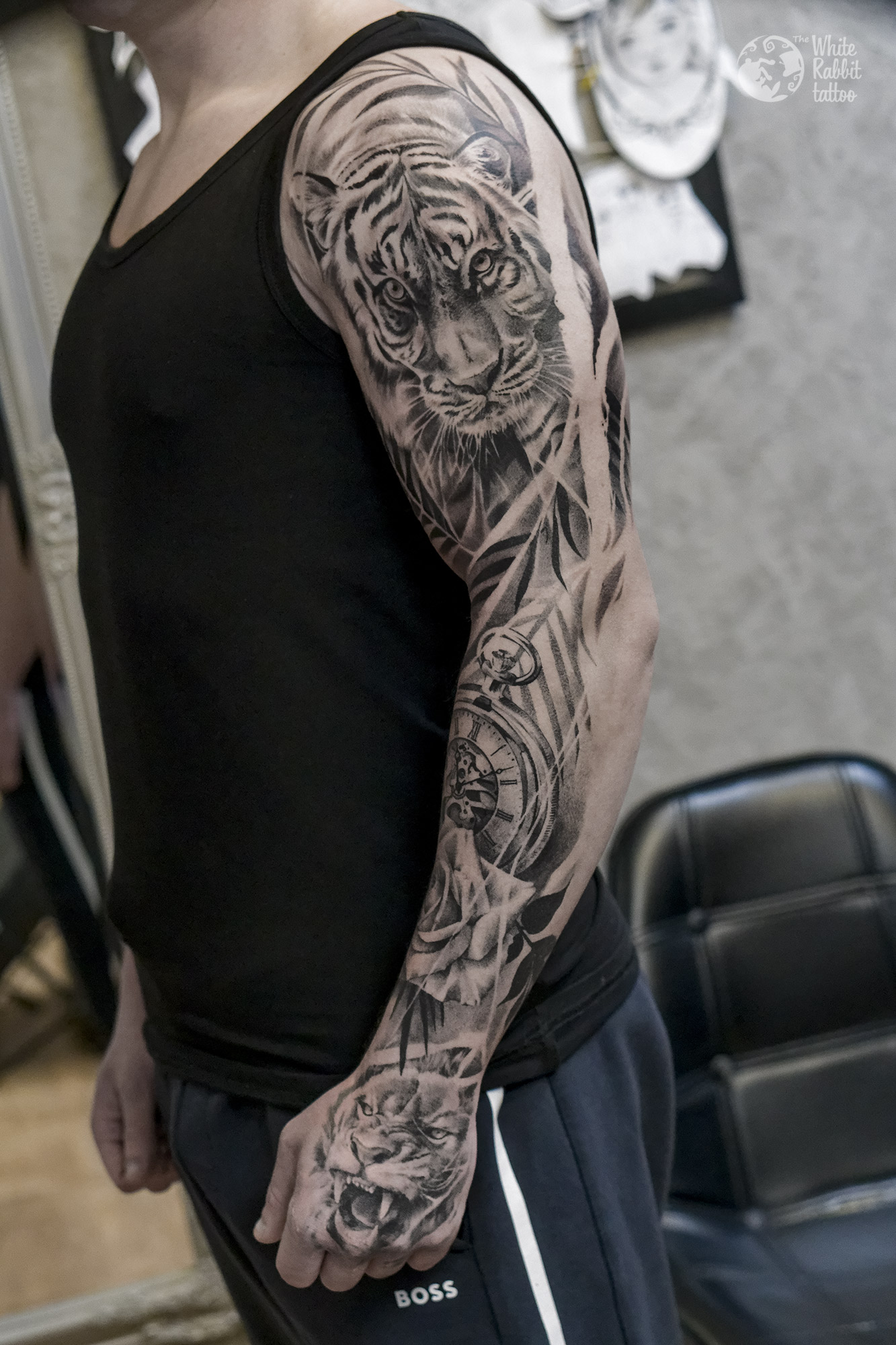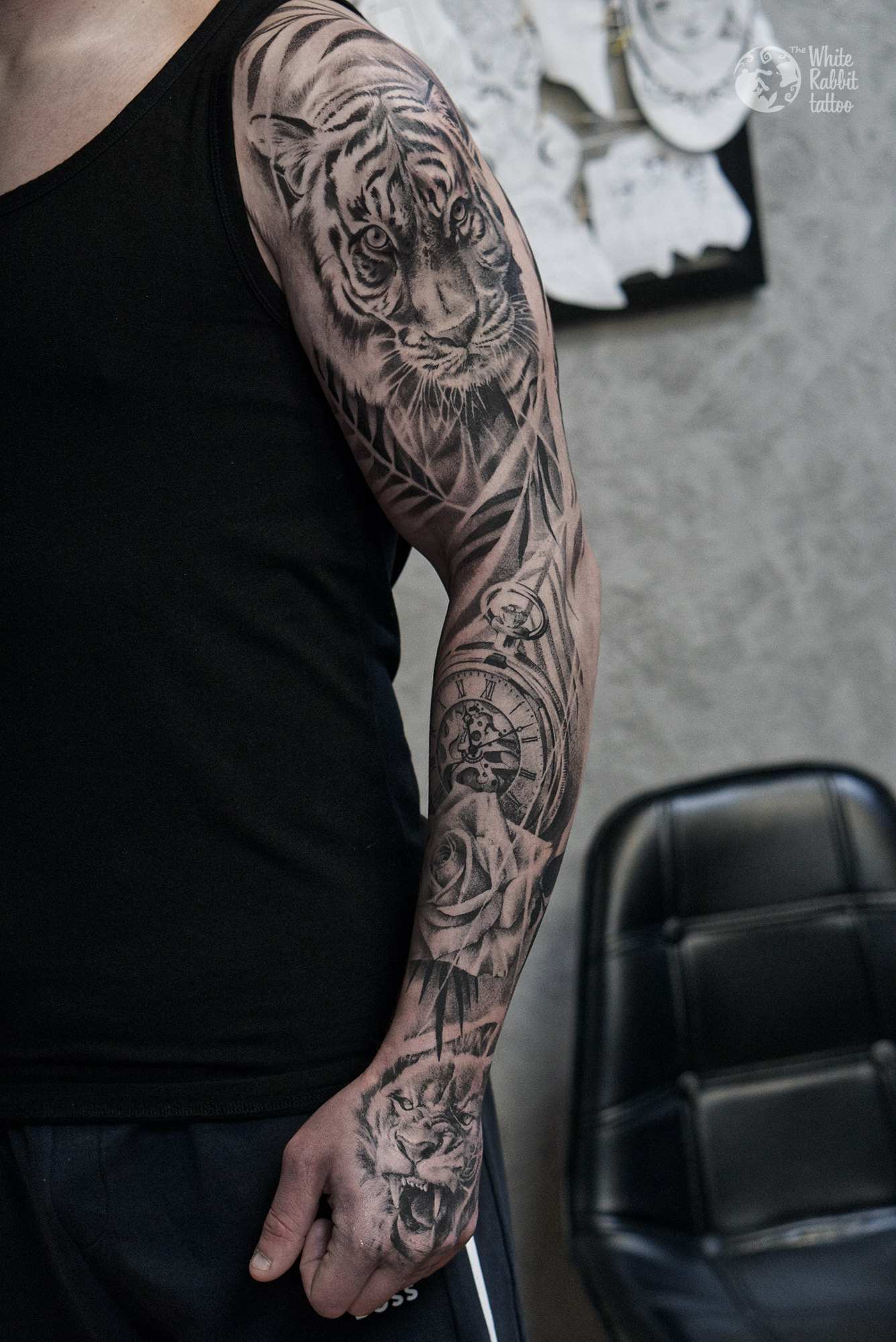 Sporo pracy poświęciłam wykonaniu rękawa. Elementy klasyczne czyli dzikie zwierzę, róża, zegar i ładnie wkomponowane rozłożyste liście.Kolejny tatuaż byk – znak zodiaku powstał na zasadzie wolnej ręki. Projekt się spodobał i powstał bardzo udany tatuaż. Orientalny motyw bambusa to też coś zupełnie innego, klimatyczny wzór. Bardzo też lubię tworzyć tatuaże dark-soulsowe, które wybiera jeden z moich ulubionych klientów. Na koniec wyróżnię wzór dookoła biustu, który zachwyca delikatnością. Dał on początek całej serii tatuaży, efekty przedstawię zapewne przy okazji kolejnego spotkania. Galeria tatuażu powoli zamyka swoje podwoje, zapraszam do odwiedzin za jakiś miesiąc dwa, pozdrawiam.